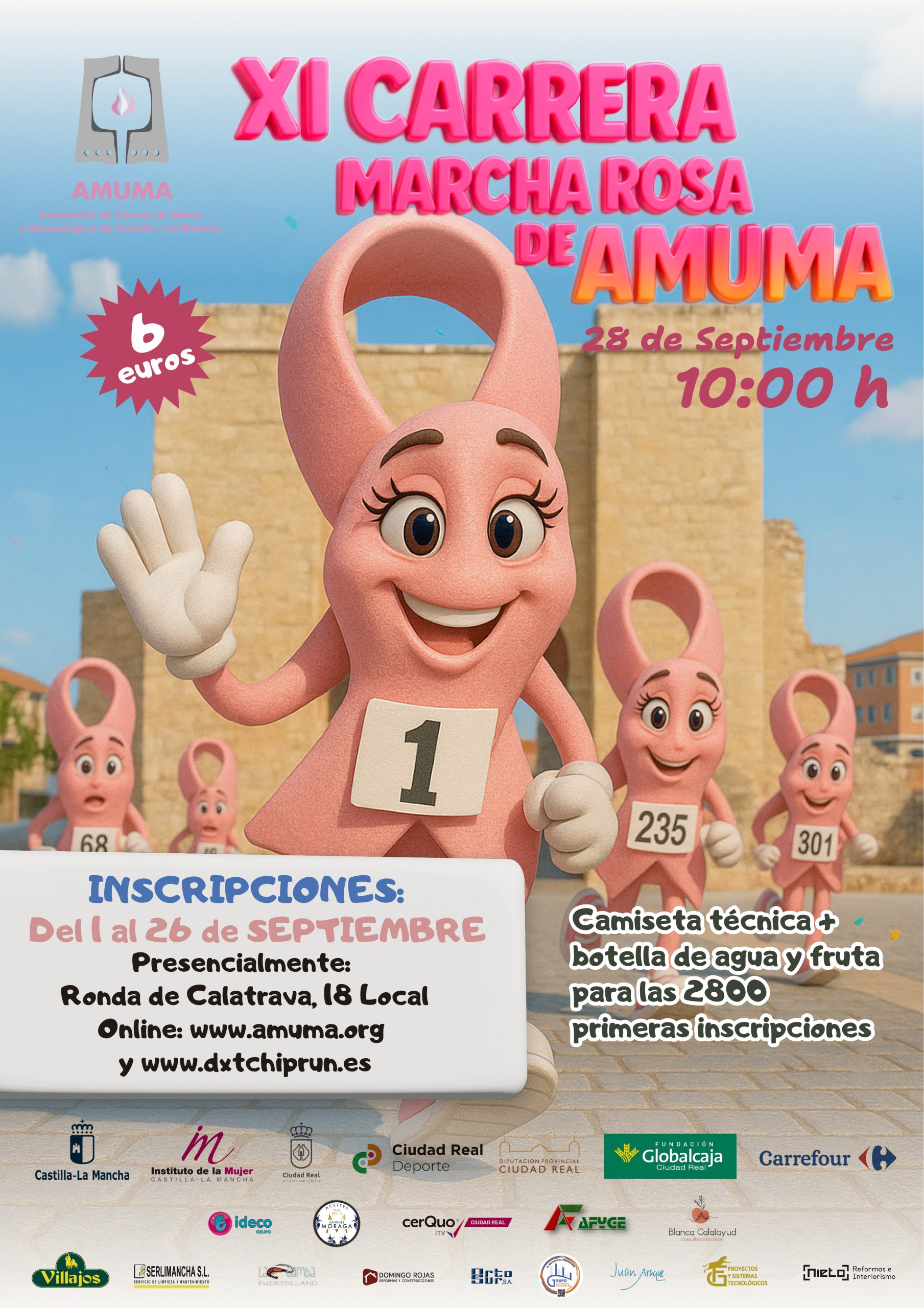 XI Carrera Marcha Rosa de AMUMA El próximo 28 de Septiembre a las 10:00 horas tendrá lugar la XI Carrera Marcha Rosa de AMUMA. Pueden inscribirse presencialmente en Ronda de Calatrava 18 Local de Ciudad Real, en la web www.amuma.org o en www.dxtchiprun.es...