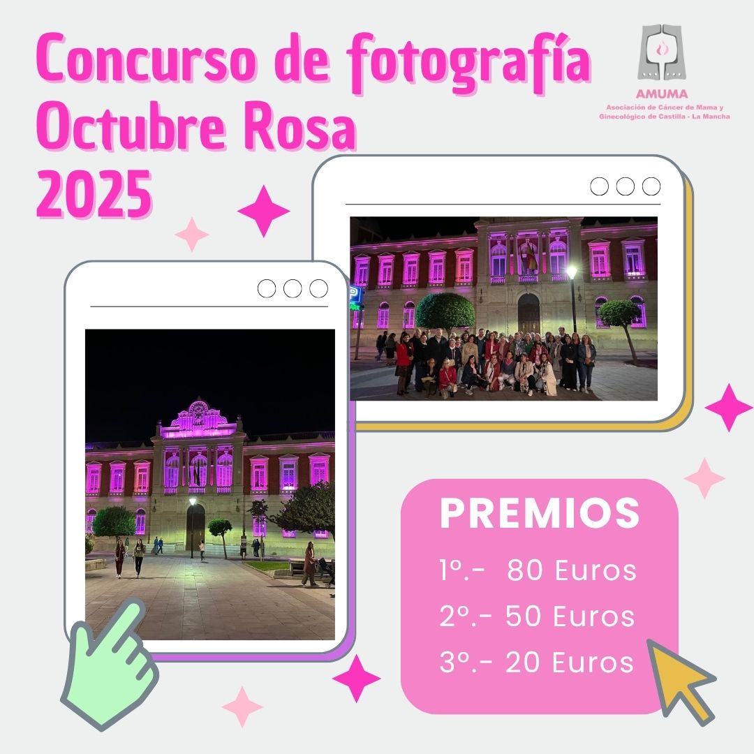 Concurso de Fotografía Octubre Rosa 2025 Pincha aquí para descargar las Bases del concurso ¿Cómo participar? Hazte una foto en uno de los edificios iluminados de rosa. Sube la foto a Facebook e instagram con el Hashtag @AMUMAFOTOROSA. Síguenos en Redes Sociales. Tu...